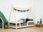 Das NAKANA Hausbett ist nicht nur ein Bett, sondern ein echtes Abenteuer für dein Kind. Mit seiner einzigartigen Teepee-Form lädt es zu fantasievollen Spielen ein und bietet gleichzeitig einen sicheren und gemütlichen Schlafplatz. Dieses Hausbett ist in verschiedenen Größen erhältlich und passt sich perfekt den individuellen Bedürfnissen deiner Familie an. Hergestellt aus hochwertigem Fichtenholz und mit natürlichen, umweltfreundlichen Farben lackiert, bringt das NAKANA Hausbett nicht nur Freude ins Kinderzimmer, sondern auch ein gutes Gewissen.
